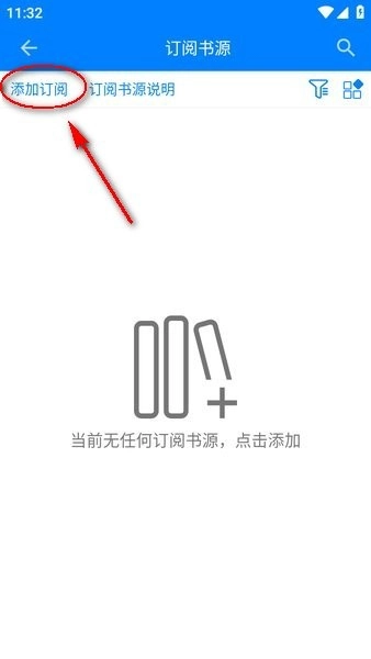 进入“订阅书源”后,点击“添加书源”,如图所示;
