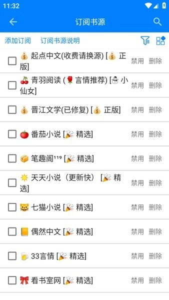 订阅成功后,书源就导入成功了,“书源管理”界面就出现了大量书源;