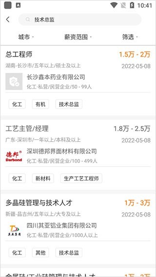化工英才网手机版是一款专为化工从业者打造的人才招聘平台软件,平台上汇聚了各类化工相关工作岗位,能帮助用户找到优质的就业机会,提升求职体验。在这里,不同岗位的化工人员都能寻觅到心仪的工作,而且所有岗位信息均经过严格审核,确保安全可靠、真实有效,为用户带来优质的求职服务。有需要的用户可以在本站使用这款软件。