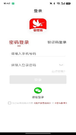 2. 登录界面支持两种登录方式,一种是通过手机号与密码组合登录,另一种是直接使用微信账号快捷登录。