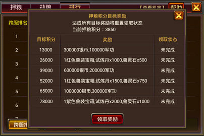 押粮途中玩家可以攻击其他服务器玩家的粮车进行劫粮。每天最多劫粮2次。(劫粮失败也算次数)