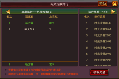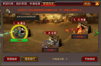 全体军团成员集体挑战关卡,打败的关卡越多,可获得的奖励越高。