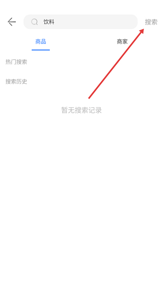 1、在首页点击顶部搜索框,输入目标商品关键词(如“饮料”),进入搜索页面。