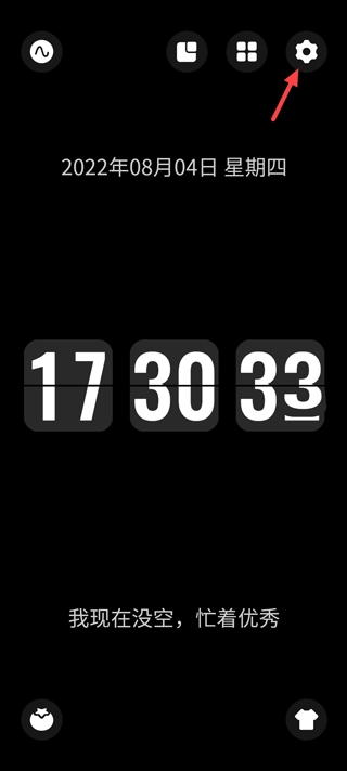 1、首先打开翻页桌面时钟,点击软件首页右上角“设置”。