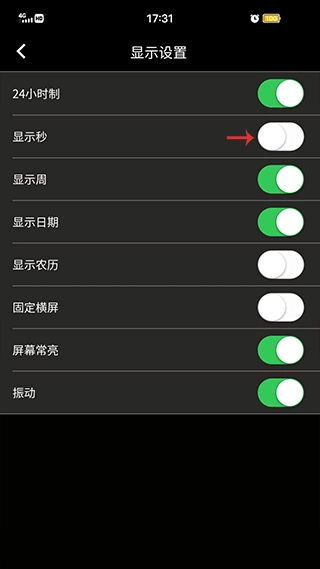 3、最后将“显示秒”开启即可。