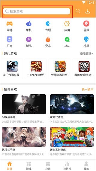 1、这里可以找到种类繁多的手机游戏,无论用户喜欢哪种类型,都可以在软件里搜索找到。