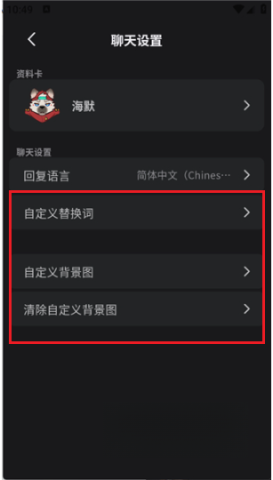 5、你也能借助右上角的菜单,对语言、替换词和背景图进行设置,以此来全面定制专属于你的聊天体验。