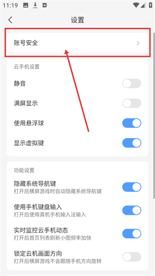 2、进入设置界面后,点击【账号安全】选项,就能进入账号与安全界面,在这里可以进行账号安全相关的操作。