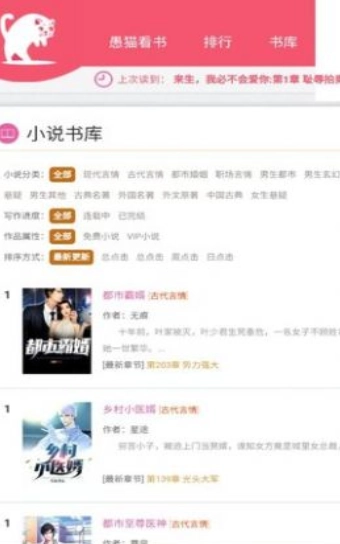 愚猫看书是一个资源丰富的优质小说阅读平台。用户在这里能轻松免费阅读自己喜爱的小说资源,平台不会对这些资源收取任何费用。平台的榜单汇聚了众多优质小说,排名实时更新,用户可以随时查看并自由挑选。此外,平台还会根据用户喜好进行个性化小说推荐,让用户不再为找不到好小说而烦恼。快来体验吧!
