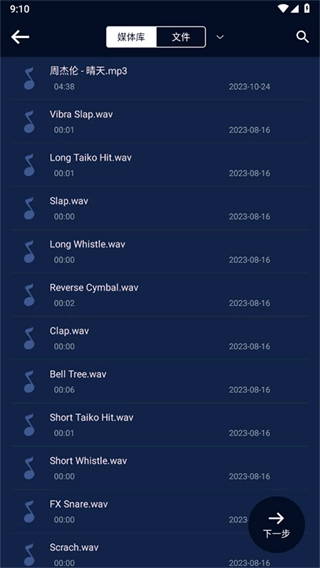 3、在媒体库或文件里,找到你需要添加的音频编辑素材。