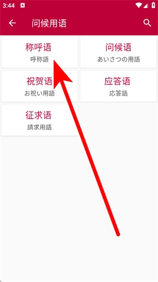 3、在子分类页面,点击称呼语,进入称呼语的词汇列表页面。