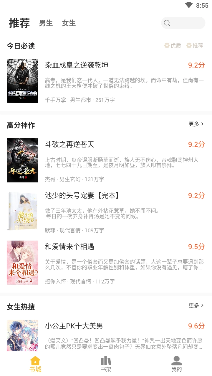 软件针对男生和女生分别设立了专属的阅读区域,以此满足不同性别用户的阅读偏好。