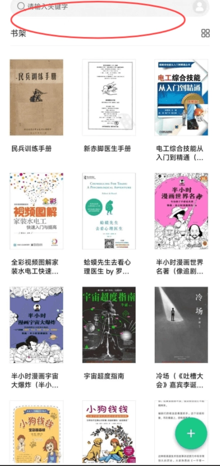 5、还可以通过输入关键字,快速搜索书架添加的书本内容。
