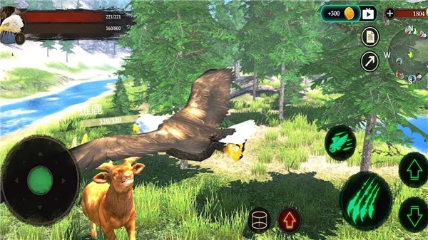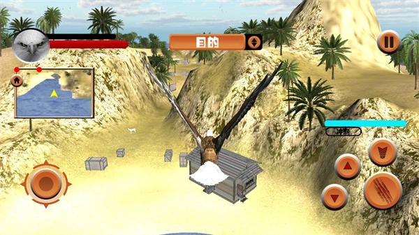 3、进入游戏后,右侧轮盘用于操控老鹰移动,右侧的按钮则分别负责控制老鹰下降、上升以及发动攻击。