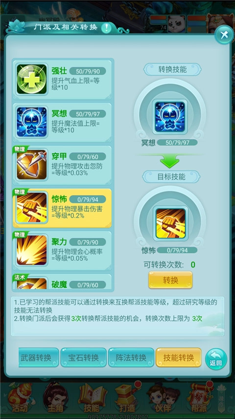 当人物完成转换后,你所使用的装备、宝石、阵法以及技能,都能在孟婆处进行对应的转换操作。举例来说,转换武器时,只会改变武器的外观,不会对其属性造成影响……这些转换服务是在人物转换后免费提供的,无需额外支付费用,但都设有次数限制。