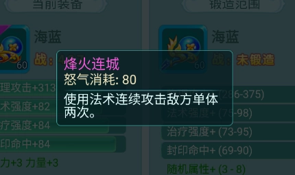 <烽火连城>:"使用法术连续攻击敌方单体两次。"消耗怒气值:80