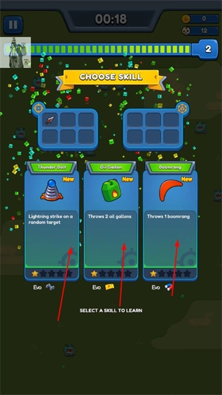 2、升级时选择技能,增强攻击能力和战斗策略。