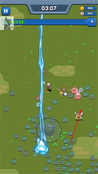 4、随着等级提升,解锁更强技能,应对更密集的怪物群,挑战更高关卡,朝着生存更久的目标努力。