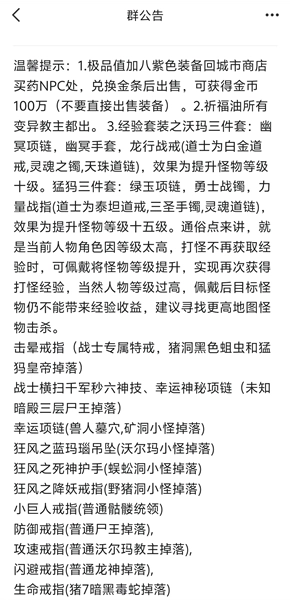 5.刷齐沃玛经验套装(可使怪物等级提升10级)后,返回尸王殿继续刷特戒,直到无法获取经验(等级达到116级)。若未刷出极品特戒,就开始使用真实药水(对无经验的怪物攻击也能获得经验),将使用时间与双倍经验时间凑在一起同步使用,持续刷怪,直到真实药水用完为止。