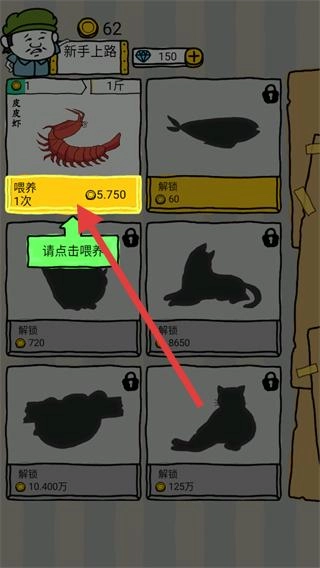 1、进入游戏后,点击动物下方的喂养按钮,可以提升其重量获取收益。