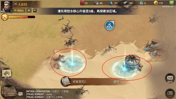 2、搭建基地,基地内所有建筑的等级都取决于这座“控水核心”,它的作用类似于其他游戏里的“城主府”。