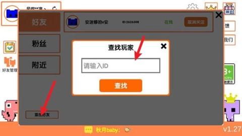 2、接着找到添加好友的选项,输入好友的ID进行搜索。