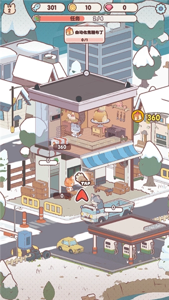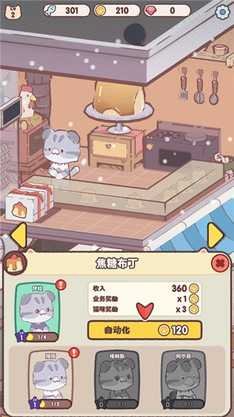 2、能够收集各类猫咪,并且通过训练使它们成为店铺的得力帮手。