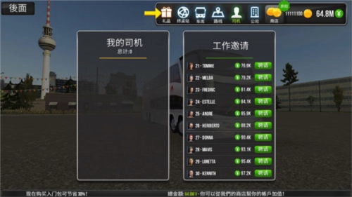 经营这家公交公司,大家可以自己体验驾驶,也可以招募司机为你带来效益。
