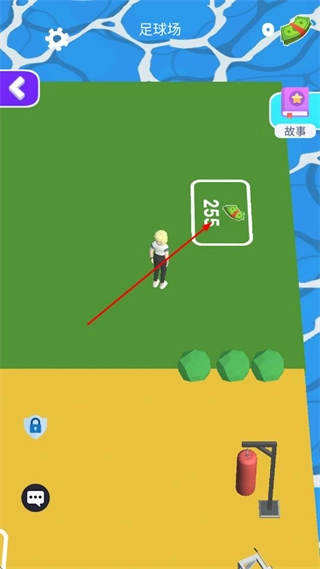 4、进入游戏后,可看到不同的场景区域,如足球场,走近标注有资源的区域,可获取相应资源。