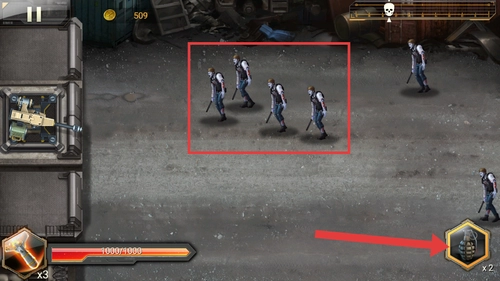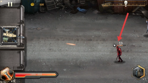 2、战斗时,等箭头指向的僵尸出现后,长按操控炮塔发起攻击,用持续输出压制敌人的推进路线。