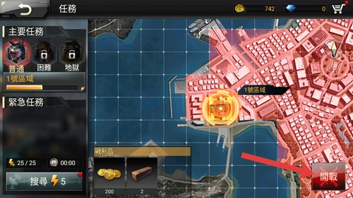 1、进入任务界面后,点击“开战”进入战斗界面,系统会加载当前关卡的地图以及敌人的配置信息。