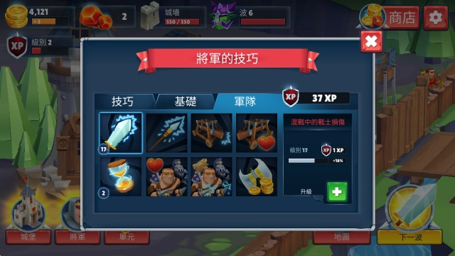 7、返回主界面后,可通过消耗金币来对城池进行升级,或是提升各类能力。