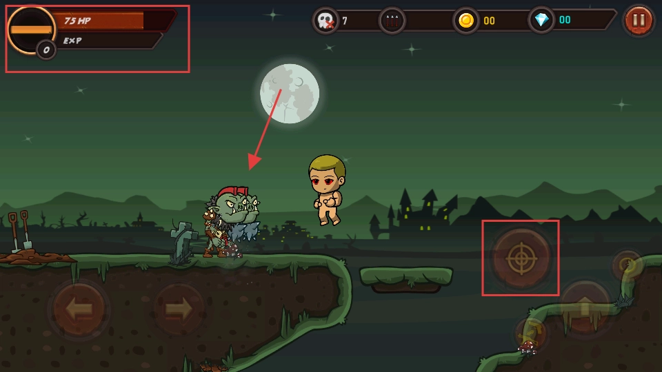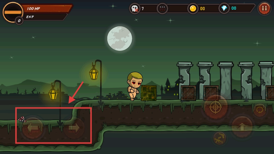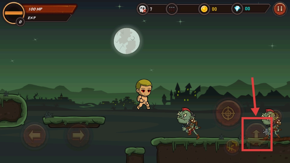 3、借助右侧的跳跃按键来越过地形上的阻碍,靠近敌人之后就能发起攻击,从而推动关卡的进度。