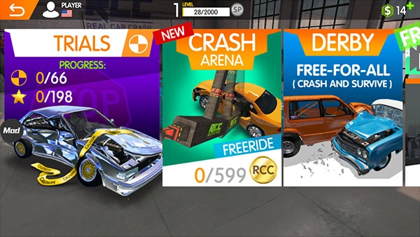 rcc真实车祸模拟器是一款既能模拟撞击又能体验竞速的手机游戏,玩家可以自行组装和调试心仪的车辆进行撞击试验,也能将其当作普通赛车竞速游戏来玩。这款游戏玩起来特别解压,操作也很简单,玩家不仅可以选择不同的赛车,还能为赛车提升性能、增强强度,这样就能更清晰地了解不同赛车的特色,也能对比出不同性能组装的差异。游戏中还可以购买器械,用于给汽车升级或者销毁汽车。通过进行不同强度的测试,玩家能够获得新成就、经验和能力,攒够销毁经验还能解锁超酷的汽车和新玩法。游戏玩法有趣且多样,赶紧开着车在游戏里尽情碰撞,好好享受一番吧。