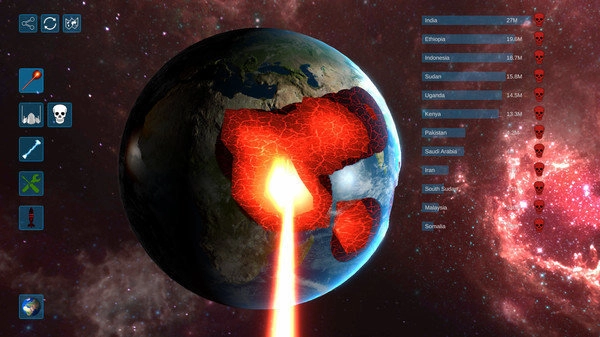 3. 选择毁灭方式:玩家从多种毁灭方式中选择一种或多种组合,开始模拟星球的毁灭过程。
