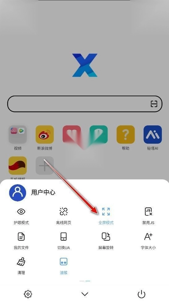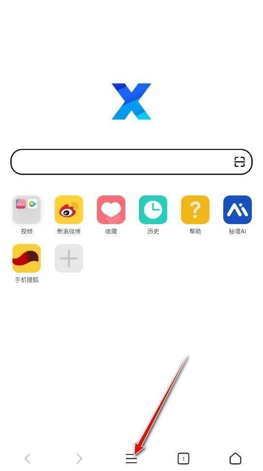 1、打开X浏览器,在首页中点击下方工具栏中的三横线