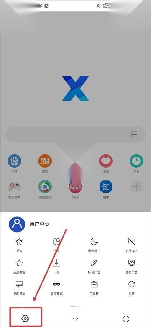 3、打开X浏览器,进入浏览器设置》用户中心》从html文件导入书签。