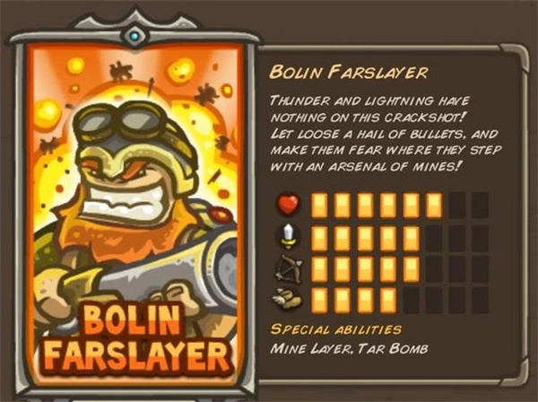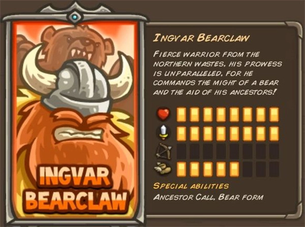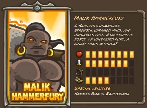 马大锤表面看似皮糙肉厚,实则不然,防御能力仅算中等水平。和爵士类似,他同样是近战英雄,不具备对空能力,但在应对小怪群时的表现要优于爵士。他拥有两个技能:其一为大锤锤击造成出血效果,据我观察最多能波及五六个怪物,脆皮怪物往往会被直接锤死,面对蜘蛛、狼群这类敌人时效果极佳;其二是大锤锤击造成眩晕,一次能眩晕不少怪物,为后续输出创造了宝贵的时间窗口。他最常用的场景是第十二关守卫园林,只要将马大锤部署在园林门口,就无需担心骷髅大军破门而入,让人十分安心。此外,在支线中那些怪物扎堆且血厚的关卡,用眩晕技能先锤晕敌人,也能为团队争取到不少操作时间。