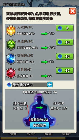 3、接着点击突破境界按钮就可以了,角色需要达到对应的规定等级,才能进行境界突破。
