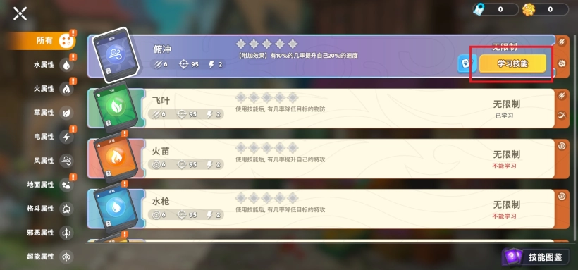 3、选择想要学习的技能即可。