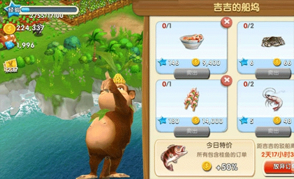6、吉吉的船坞中的订单大都是有关于海产,所以这个在玩家后期才能来完成!