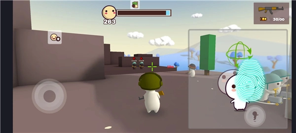 4.点击指纹图标位置,长按控制好方向,枪支会自动射击敌人。