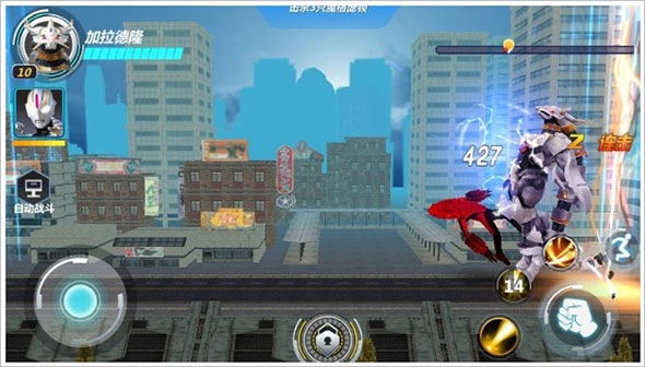 左侧虚拟摇杆控制奥特曼移动,走位灵活响应迅速。