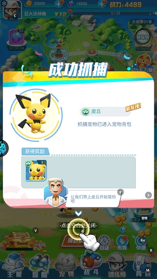 3、捕捉成功后就可带上宝可梦开始冒险之旅了。