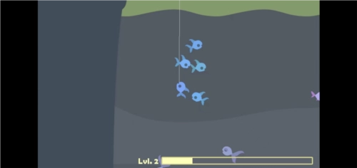 2、接着进入钓鱼界面,迅速按住鱼钩,通过左右滑动屏幕来钓鱼,钓到的鱼数量越多,获得的分数就越高。