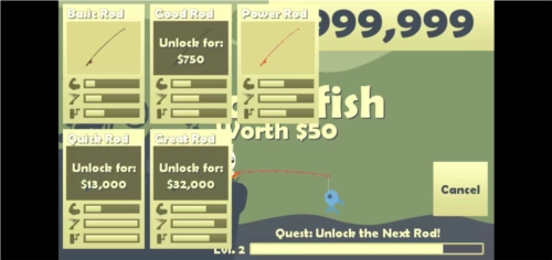 2、包含繁多的小鱼品种,同时提供多种鱼竿可供挑选,满足不同钓鱼需求。