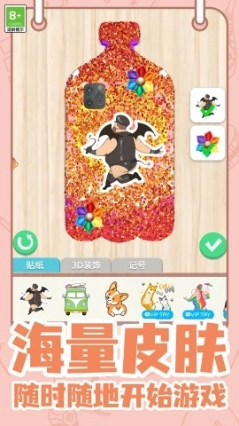 4、还能添加各类装饰配件,比如闪钻、贴纸、挂饰等,发挥想象力打造独一无二的专属手机壳,相当的有趣。