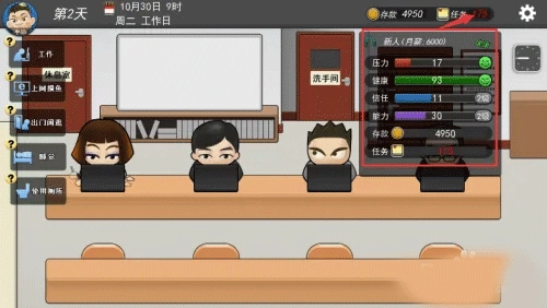 3、职场环境中危机较多,若想保住现有职位,需收集更多物品保障自身,当然也可选择非常规的行为方式。