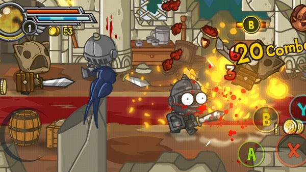 游戏的操作方式十分简易,采用摇杆手柄的模拟设计:左侧为模拟摇杆,负责操控角色的移动方向;右侧则是模拟按键区域,其中Y键用于释放魔法,B键可实现闪避敌人攻击的动作,A键对应跳跃功能,X键则是普通攻击的触发键。此外,游戏内还设有终结技能机制——当敌人被攻击至特定状态,其头顶会出现B键图标,此时靠近敌人并按下B键,就能施展出极具特色的终结技能。