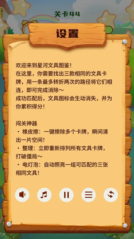 1.经典消除机制:沿用经典消除类游戏的核心玩法框架,以连线匹配为操作形式,玩家需把三个及以上同类型的文具图标通过连线方式连接起来完成消除,以此累积分数,最终达成各关卡设定的目标。